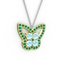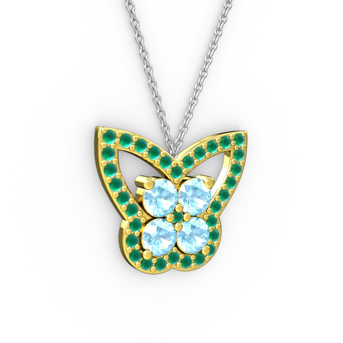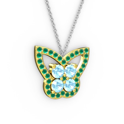 Kök zümrüt ve akuamarin 18 ayar altın kolye (40 cm beyaz altın rolo zincir)