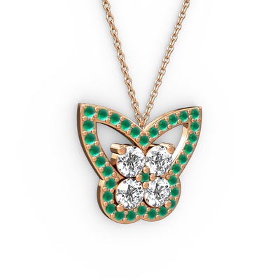 Kök zümrüt ve beyaz zirkon 925 ayar rose altın kaplama gümüş kolye (40 cm rose altın rolo zincir)