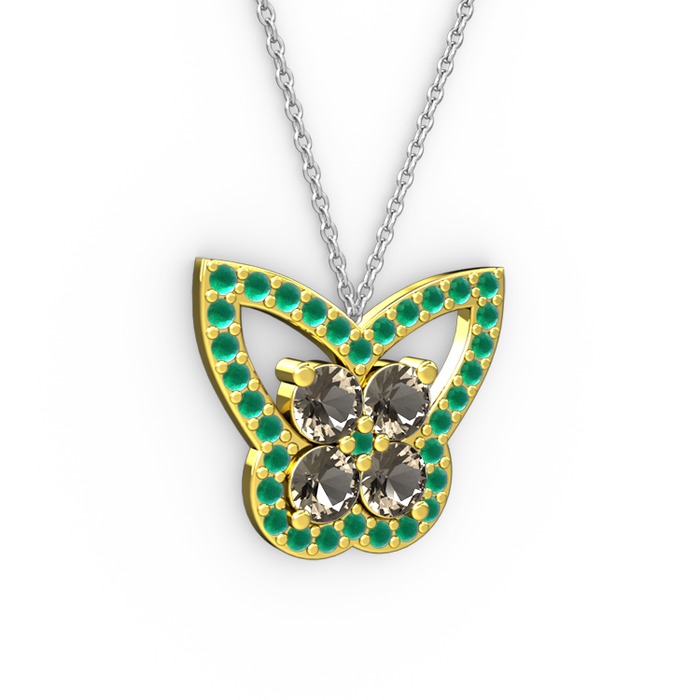 Kök zümrüt ve dumanlı kuvars 18 ayar altın kolye (40 cm beyaz altın rolo zincir)