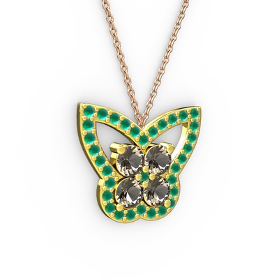 Kök zümrüt ve dumanlı kuvars 925 ayar altın kaplama gümüş kolye (40 cm rose altın rolo zincir)