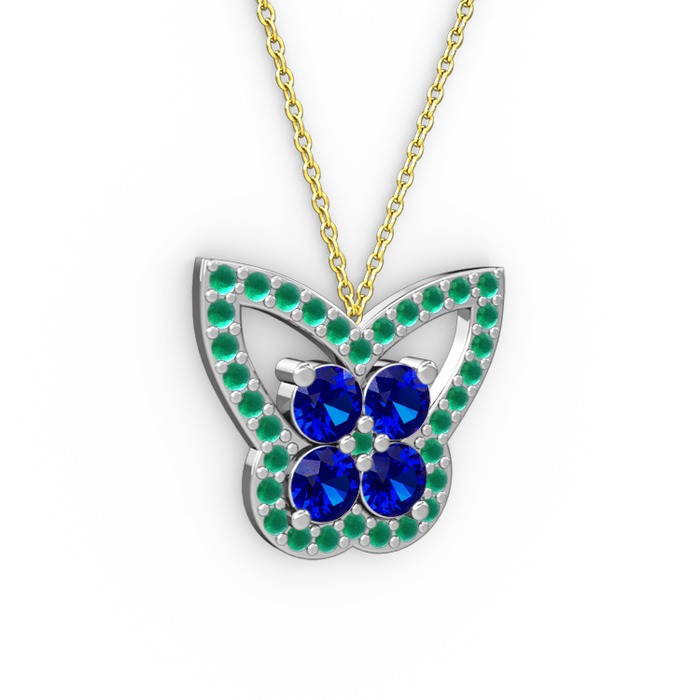 Kök zümrüt ve lab safir 14 ayar beyaz altın kolye (40 cm altın rolo zincir)