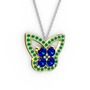 Kök zümrüt ve lab safir 18 ayar altın kolye (40 cm gümüş rolo zincir)
