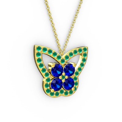 Kök zümrüt ve lab safir 8 ayar altın kolye (40 cm altın rolo zincir)