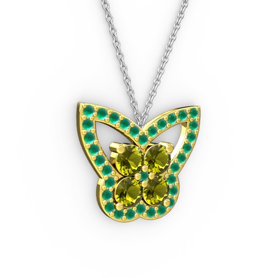 Kök zümrüt ve peridot 18 ayar altın kolye (40 cm beyaz altın rolo zincir)