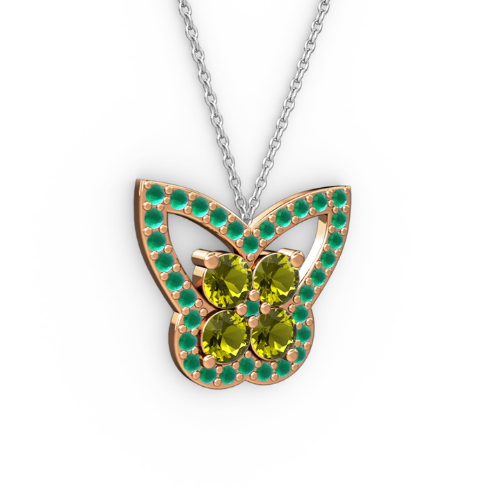 Kök zümrüt ve peridot 18 ayar rose altın kolye (40 cm beyaz altın rolo zincir)