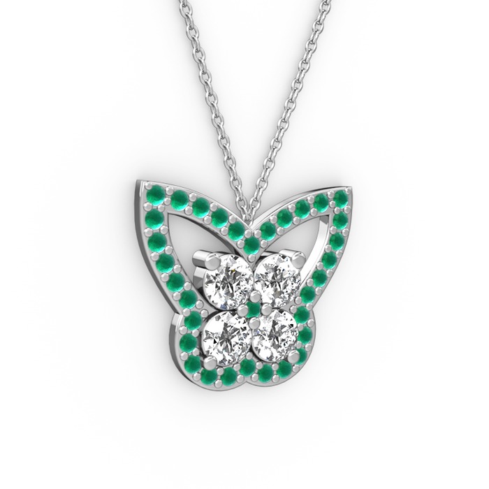Kök zümrüt ve pırlanta 18 ayar beyaz altın kolye (0.96 karat, 40 cm gümüş rolo zincir)