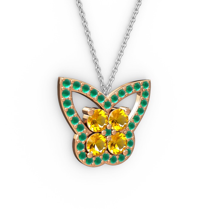 Kök zümrüt ve sitrin 14 ayar rose altın kolye (40 cm beyaz altın rolo zincir)