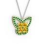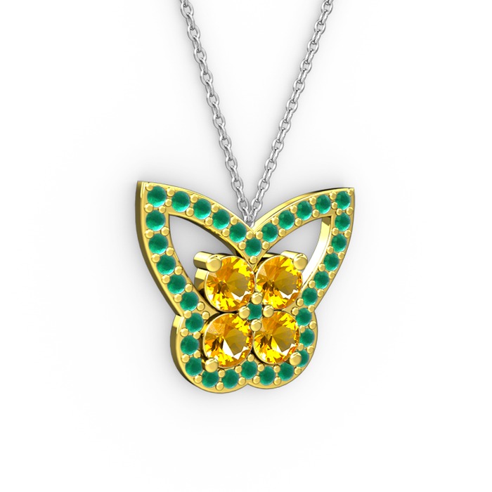 Kök zümrüt ve sitrin 925 ayar altın kaplama gümüş kolye (40 cm gümüş rolo zincir)