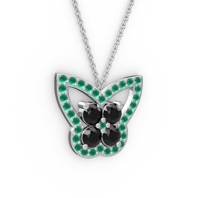 Kök zümrüt ve siyah zirkon 925 ayar gümüş kolye (40 cm beyaz altın rolo zincir)