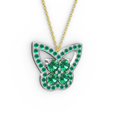 Kök zümrüt ve yeşil kuvars 14 ayar beyaz altın kolye (40 cm altın rolo zincir)