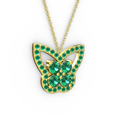 Kök zümrüt ve yeşil kuvars 925 ayar altın kaplama gümüş kolye (40 cm altın rolo zincir)