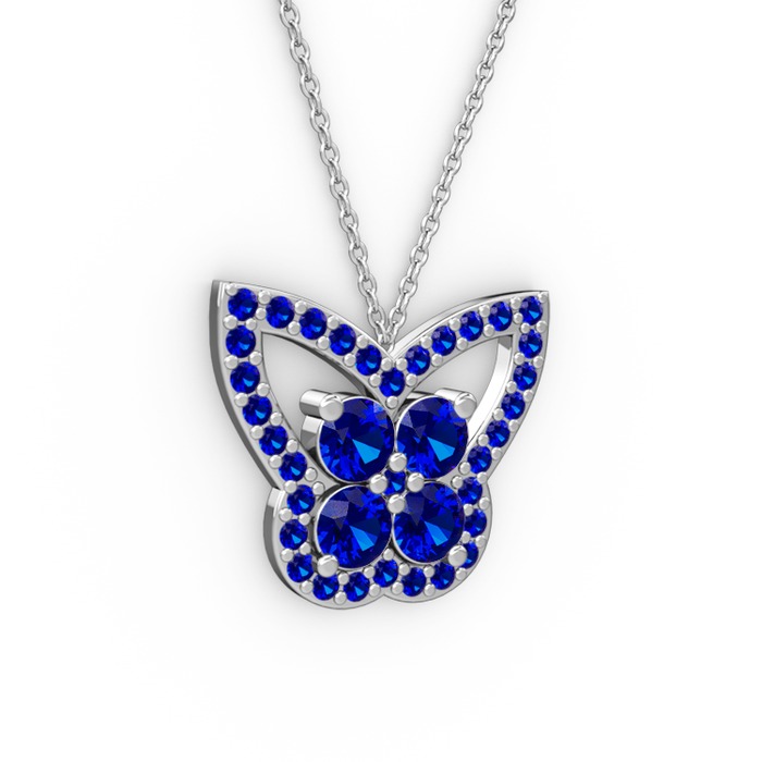 Lab safir 8 ayar beyaz altın kolye (40 cm beyaz altın rolo zincir)
