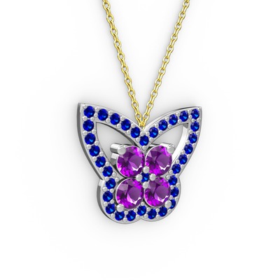 Lab safir ve ametist 14 ayar beyaz altın kolye (40 cm altın rolo zincir)