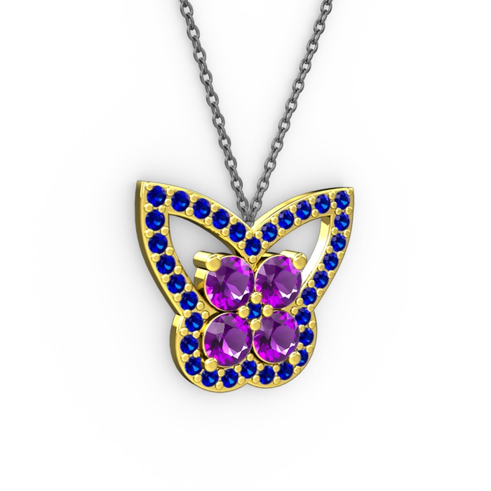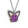Lab safir ve ametist 925 ayar altın kaplama gümüş kolye (40 cm gümüş rolo zincir)