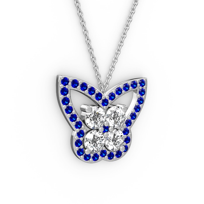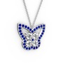 Lab safir ve beyaz zirkon 8 ayar beyaz altın kolye (40 cm gümüş rolo zincir)