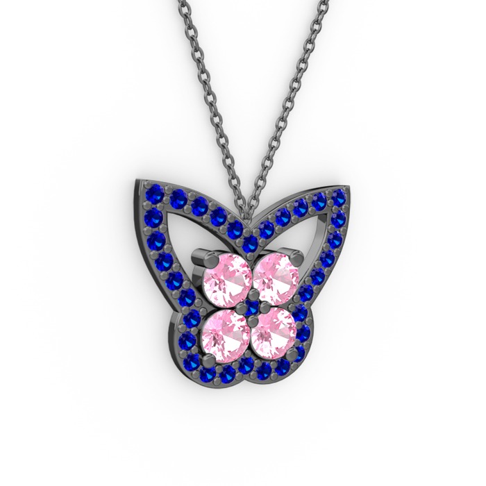 Lab safir ve pembe kuvars 925 ayar siyah rodyum kaplama gümüş kolye (40 cm gümüş rolo zincir)
