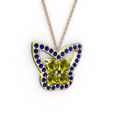 Lab safir ve peridot 925 ayar altın kaplama gümüş kolye (40 cm rose altın rolo zincir)