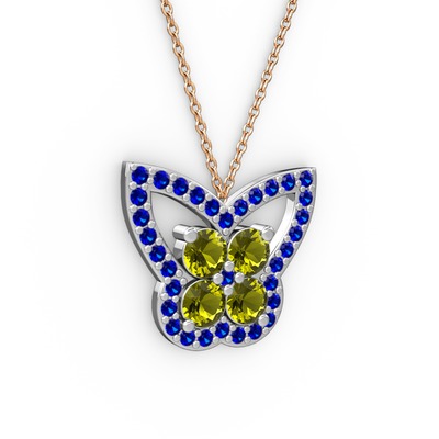Lab safir ve peridot 925 ayar gümüş kolye (40 cm rose altın rolo zincir)