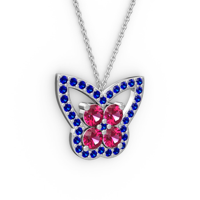 Lab safir ve rodolit garnet 18 ayar beyaz altın kolye (40 cm gümüş rolo zincir)