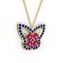 Lab safir ve rodolit garnet 8 ayar altın kolye (40 cm altın rolo zincir)