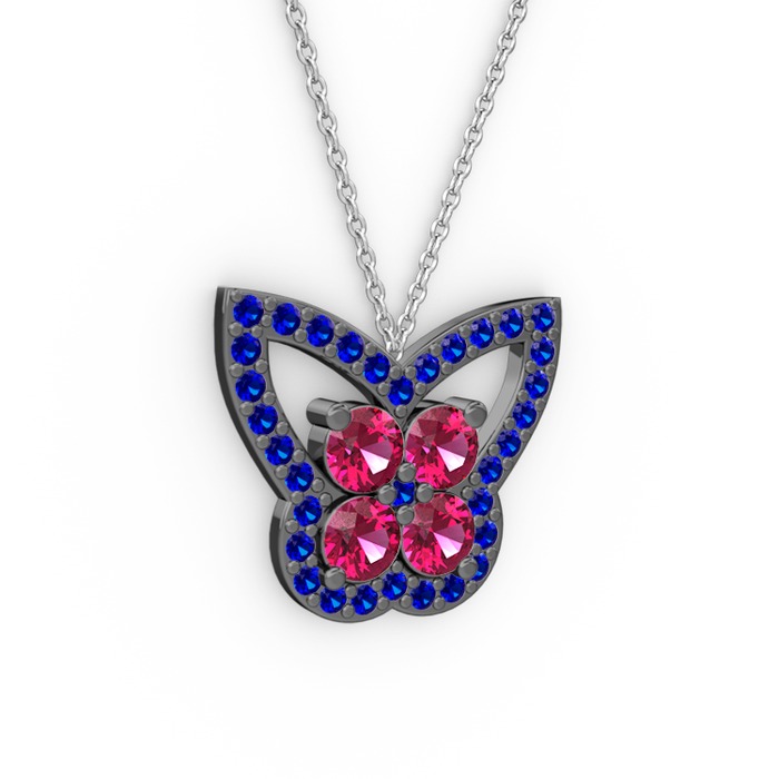 Lab safir ve rodolit garnet 925 ayar siyah rodyum kaplama gümüş kolye (40 cm gümüş rolo zincir)