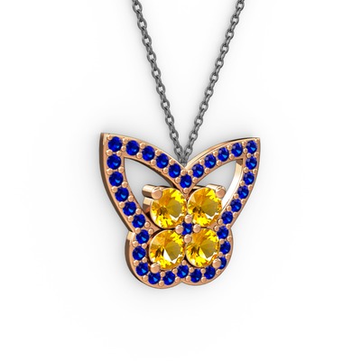 Lab safir ve sitrin 14 ayar rose altın kolye (40 cm gümüş rolo zincir)