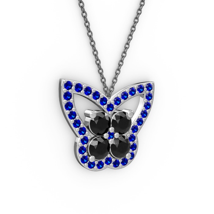 Lab safir ve siyah zirkon 18 ayar beyaz altın kolye (40 cm gümüş rolo zincir)