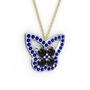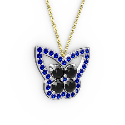 Lab safir ve siyah zirkon 18 ayar beyaz altın kolye (40 cm gümüş rolo zincir)