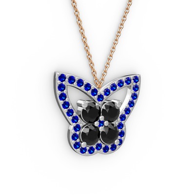 Lab safir ve siyah zirkon 925 ayar gümüş kolye (40 cm rose altın rolo zincir)