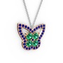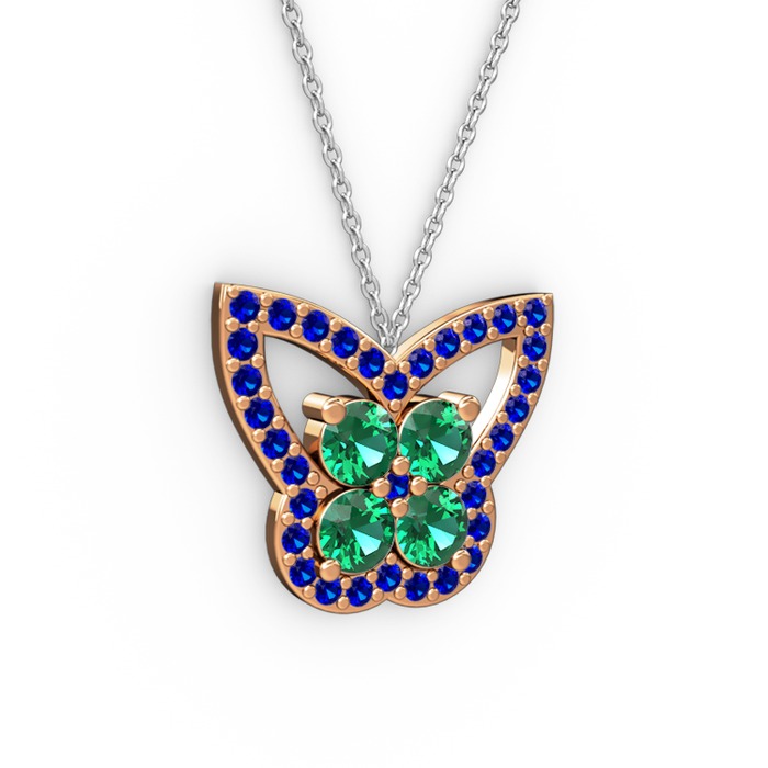 Lab safir ve yeşil kuvars 8 ayar rose altın kolye (40 cm beyaz altın rolo zincir)
