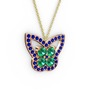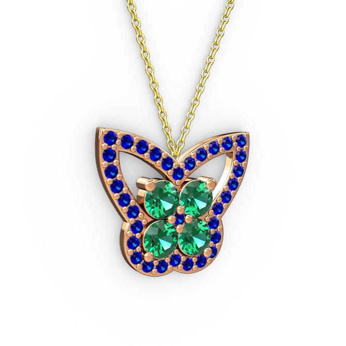 Lab safir ve yeşil kuvars 8 ayar rose altın kolye (40 cm gümüş rolo zincir)