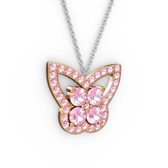 Pembe kuvars 8 ayar rose altın kolye (40 cm beyaz altın rolo zincir)