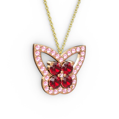 Pembe kuvars ve garnet 8 ayar rose altın kolye (40 cm gümüş rolo zincir)