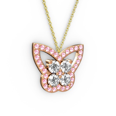 Pembe kuvars ve pırlanta 18 ayar rose altın kolye (0.96 karat, 40 cm altın rolo zincir)