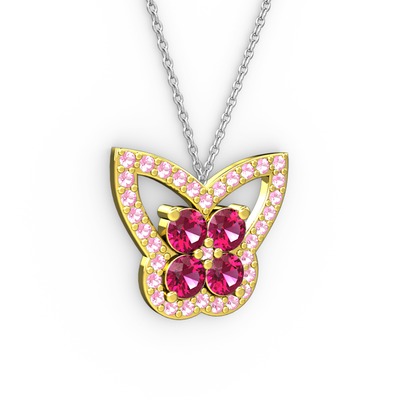 Pembe kuvars ve rodolit garnet 18 ayar altın kolye (40 cm gümüş rolo zincir)