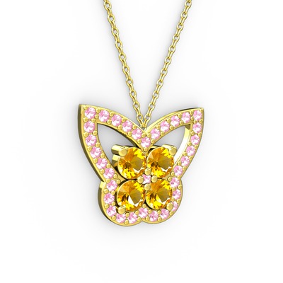 Pembe kuvars ve sitrin 18 ayar altın kolye (40 cm altın rolo zincir)