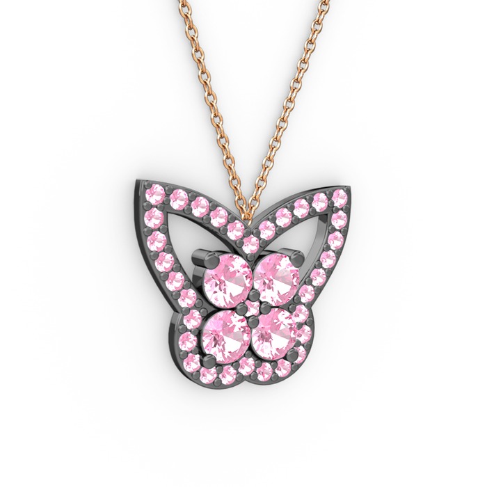 Pembe kuvars 925 ayar siyah rodyum kaplama gümüş kolye (40 cm rose altın rolo zincir)