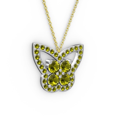 Peridot 14 ayar beyaz altın kolye (40 cm altın rolo zincir)