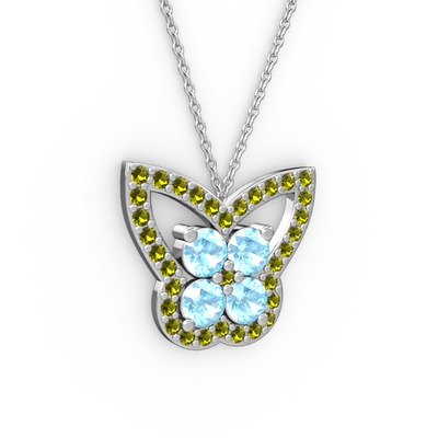 Peridot ve akuamarin 14 ayar beyaz altın kolye (40 cm beyaz altın rolo zincir)