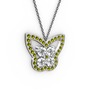 Peridot ve beyaz zirkon 18 ayar beyaz altın kolye (40 cm gümüş rolo zincir)