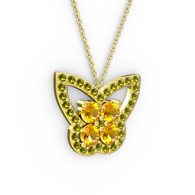 Peridot ve sitrin 18 ayar altın kolye (40 cm altın rolo zincir)