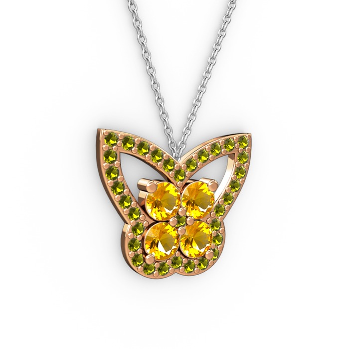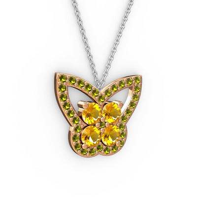 Peridot ve sitrin 8 ayar rose altın kolye (40 cm beyaz altın rolo zincir)