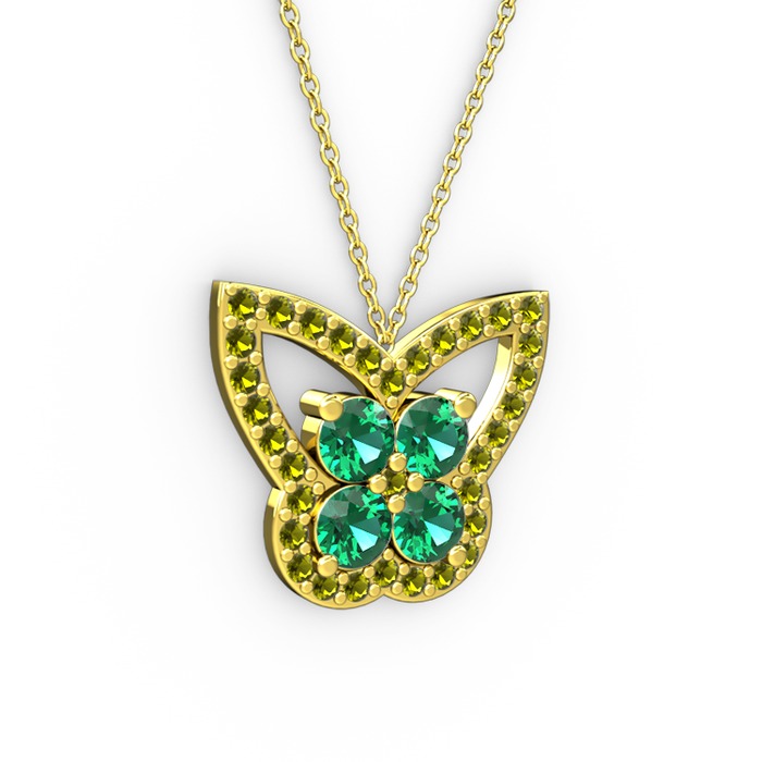 Peridot ve yeşil kuvars 18 ayar altın kolye (40 cm altın rolo zincir)