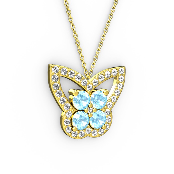 Pırlanta ve akuamarin 18 ayar altın kolye (0.48 karat, 40 cm altın rolo zincir)
