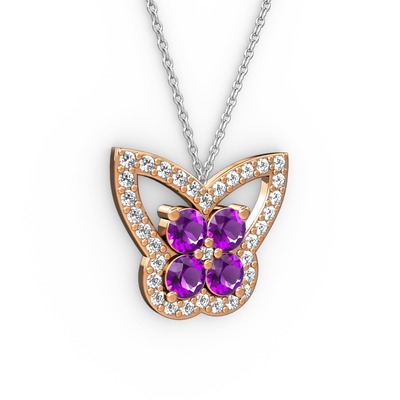 Pırlanta ve ametist 8 ayar rose altın kolye (0.48 karat, 40 cm beyaz altın rolo zincir)