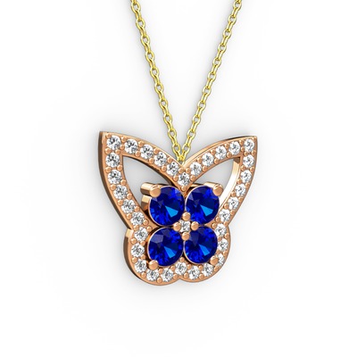 Pırlanta ve lab safir 8 ayar rose altın kolye (0.48 karat, 40 cm altın rolo zincir)