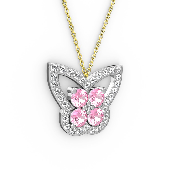 Pırlanta ve pembe kuvars 18 ayar beyaz altın kolye (0.48 karat, 40 cm altın rolo zincir)