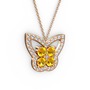 Pırlanta ve sitrin 925 ayar rose altın kaplama gümüş kolye (0.48 karat, 40 cm rose altın rolo zincir)