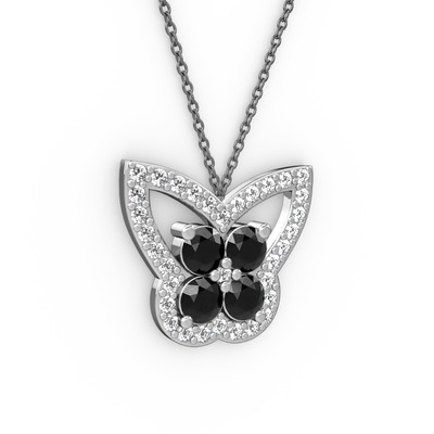 Pırlanta ve siyah zirkon 925 ayar gümüş kolye (0.48 karat, 40 cm gümüş rolo zincir)