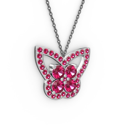 Rodolit garnet 18 ayar beyaz altın kolye (40 cm gümüş rolo zincir)
